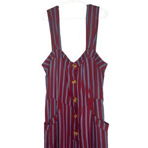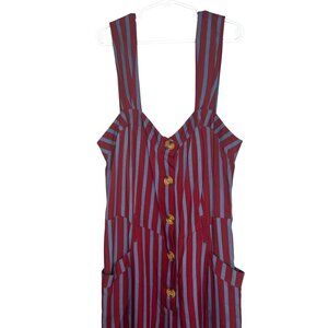 Free People City Girl Striped Red & Blue Wide-Leg Jumpsuit Button-Front Size 2