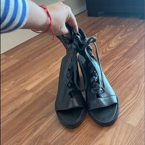 Free People City Of Light Leather Lace Up Heel Boots In Black