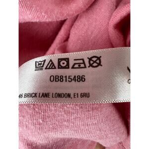 Features v-neck and split hem. Oversized style with slight crop in the front