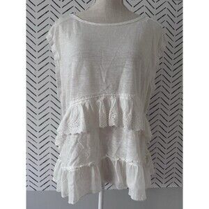 Free People Claire Tee Tunic Top Eyelet Embroidered Ruffle Tiered Boho Sz XS