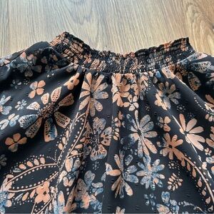 Free People Clarissa Floral Top XS Black Long Sleeve Ruffle High Neck Boho Fairy