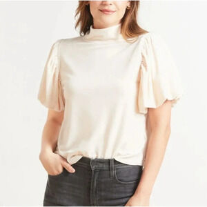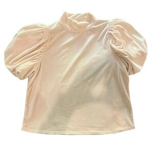 Free People Claudia Light Pink Velvet Mock Neck Puff Sleeve Blouse Size Medium