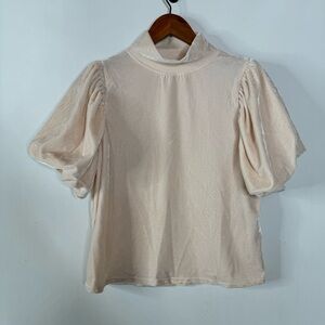 Free People Claudia Velvet Puffed Sleeve Top in Champagne Toast Size Xsmall