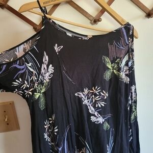 Free People Clear Skies Cold Shoulder Tunic Dress Black Floral XS Extra Small