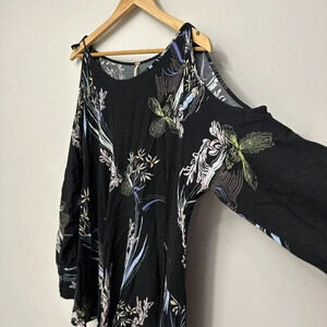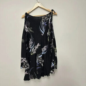 Free People Clear Skies Printed Cold Shoulder Tunic Floral Black Women's Medium