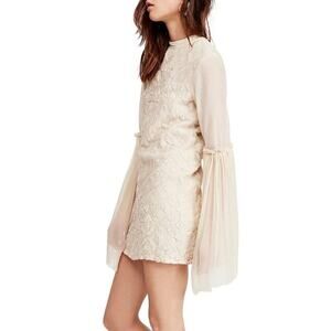 Free People Cleo Embroidered Mini Dress Tonal embroidery adds textural detailing to this mini dress, finished off with lengthy bell sleeves. Crew neck Long bell sleeves Back zip closure Tonal embroidery Cotton/spandex Hand wash NWT Size 0 Approximate measurements chest across 17" length 31.5"