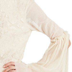 Tonal embroidery with lengthy bell sleeves.