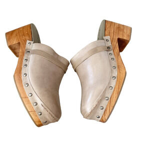 freepeople, clog, woodheel, taupe, leather, boho, artisan, neutral, platform, minimal, scandinavian, retro, comfort, handmade, chunky heel, classic, cottagecore, vintage inspired, B7