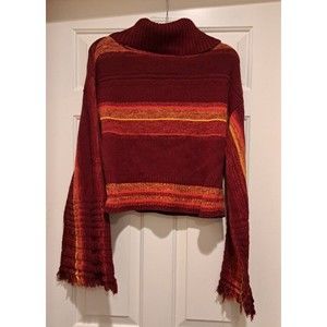 Free People Close to Me Red Turtleneck Sweater Flare Fringe Sleeve Size Large