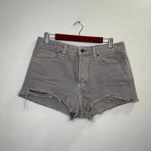 Free People Cloudy Grey Distressed High Waisted Button Fly Shorts Size 31