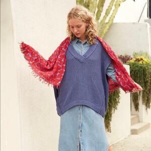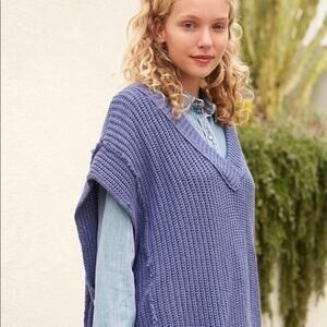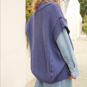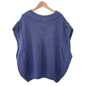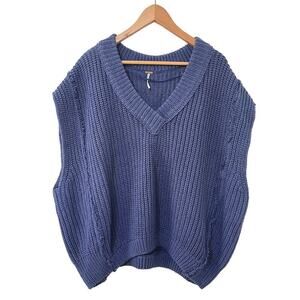 Free People Clyde Chunky Knit Oversized Sweater Vest Size XS Blue V Neck NWOT