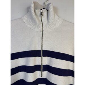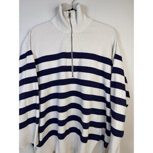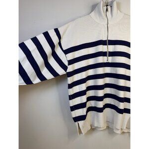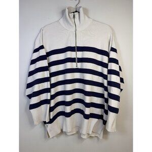 Free People Coastal Stripe Oversized Pullover Blue Beige 1/4 Zip MSRP $148 XS