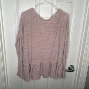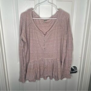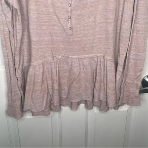 Free People Coastline Peplum Henley Thermal Top in Pink/Purple Flowy Oversized L