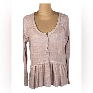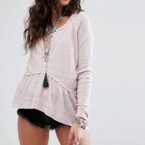 Free People Coastline Peplum Long Sleeve Thermal Top in Light Pink, XS