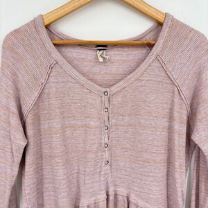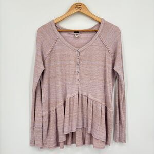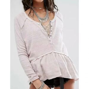 Free People Coastline Waffle Thermal Ruffle Top, Sz Small, Lavender Pink Boho