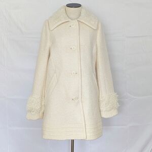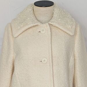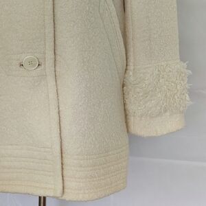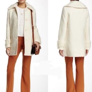 Free People Coat Jacket Wool Blend Sherpa Trim Button Front Lined Ivory L NWT