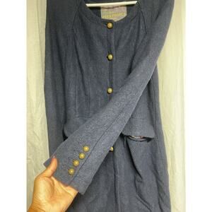 Free People Coat Womens Size XS Navy Blue Overcoat A Line Wool Pocket Detail