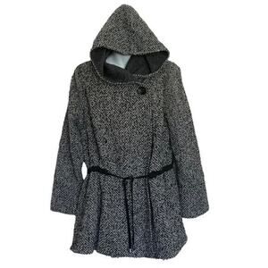 Free People Coat Womens Small Satellite Image Tweed Hooded Swing Wool Blend