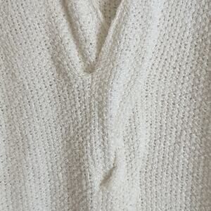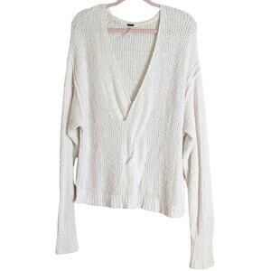 Free People Coco V neck White Waffle Knit Oversized Beach Casual Sweater Size M