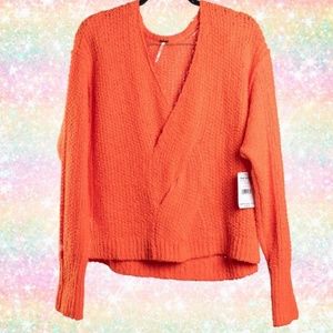 Cozy V-neck sweater featuring a chunky cable knit-inspired knot design in the center.