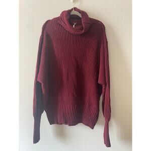 Free People Cocoa Oversized Slouchy Cowl Turtleneck in Wine Sweater Tunic XS
