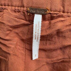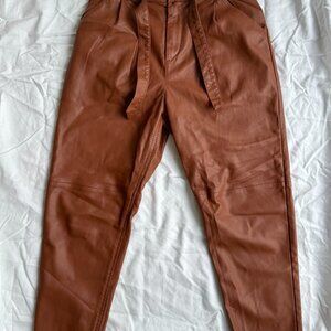 Free People Cognac Faux Leather Belted Paperbag Pants | Size 2
