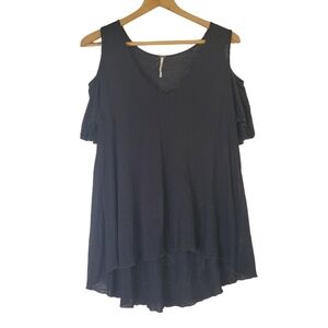 Free People Cold Shoulder Black Linen Blend Flowy Blouse Size XS