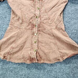 Free People Cold Shoulder Shirt Snap Button Tobacco Brown Boho Size Small Cotton