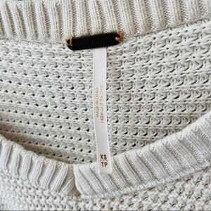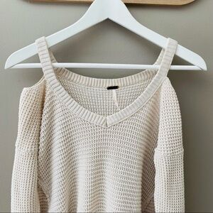 Free People Cold Shoulder Waffle Knit Sweater Cream Sz XS