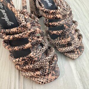 Free People Colette Cinched Caged Block Heels Open Toe Sandals Boho Python 6