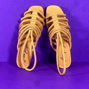 Free People Colette Cinched Orange Leather Slingback Heel Sandals Women's Size 8