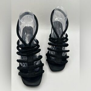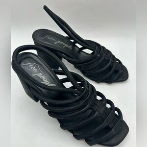 Free People Colette Cinched Strappy black leather Chunky BoHo Heel Sandals 38.5