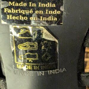 5. These beautifully crafted sandals feature a classic black color that pairs effortlessly with any wardrobe, ensuring they're ready for any occasion, from a casual day out to an evening soiree. The sandals showcase an intricate woven strap design for a unique look that stands out. Constructed with high-quality materials, these sandals promise both durability and comfort. The gently used condition indicates slight wear, which adds to their character while still maintaining the integrity and aesthetic appeal of the design. Don't miss out on the chance to own these elegant additions to your shoe collection. Perfect for fashion-forward individuals, these sandals can elevate any outfit. Their versatile color and stylish design make them the ideal choice for anyone looking to add a touch of elegance to their everyday ensemble.