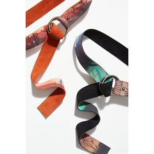 Free People Women's Midnight Tropics Story Teller Printed Leather Double Ring Belt OS New Without Tags.