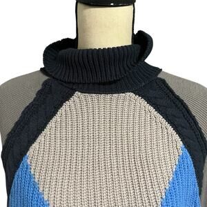 Free People | Color Block Waffle Knit Sleeve Cropped Turtleneck Sweater Sz XS
