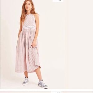 Free People Color Theory Boho Halter Cotton Pink Midi Dress Size Medium