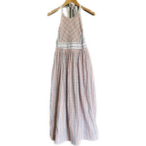 Free People Color Theory Midi Dress Pink Combo Size XS Plaid Backless Sleeveless