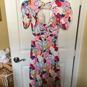 Free People Colorful Abstract Backless Dress