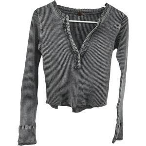 Free People Colt Thermal Top Waffle Knit Henley V Neck Relaxed Gray Small