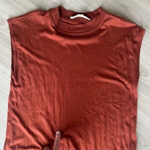 Free People Beach light weight rust-colored sleeveless midi dress. Large side pockets and slits. Small mark near stomach. Fits like a medium