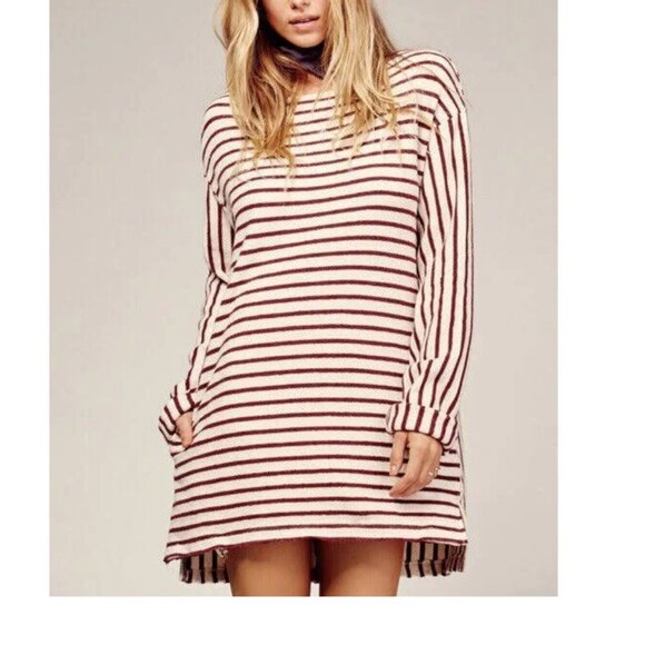 Free People Come On Over White Burgundy Striped Tunic Dress Size Small