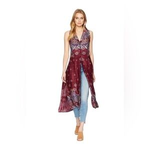Free People Come See About Me Satin Printed Bohemian Vest Duster Size XS