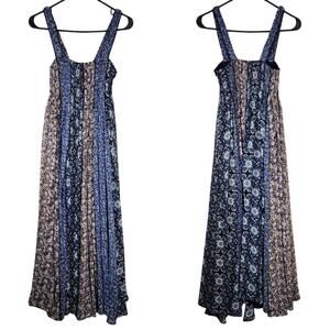 With boho patchwork alternating panels and a long flowy refreshing feeling, this beautiful dress is great for any casual occasion. It has a smocked top for a fit-and-flare style.