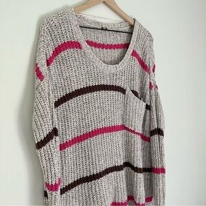 Free People women’s complete in stripes slouchy oversized sweater in grey, pink and brown. Size XS.