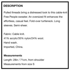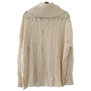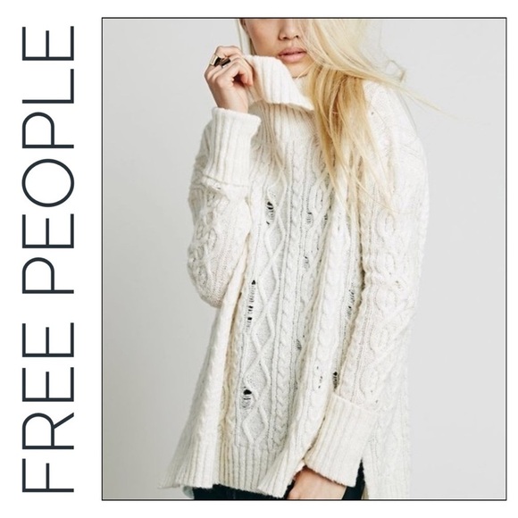 ✨Free People Ivory Complex Cable Distressed Cowl Neck Sweater✨A Free People Favorite For Years, This Sweater Looks Great With Anything✨It Features: Cables And Intentional Distressed Details With A Foldover Cowl/Turtleneck And Ribbed Collar, Hem, And Cuffs✨Cuffed Sleeves And Side Slits✨Oversized, Boxy Fit✨Approx Measurements: Bust-29”/Length-26.5”✨I Apologize For The Wrinkles-It Has Been Stored For Some Time✨Material: 41% Acrylic/33% Nylon/20% Wool/6% Alpaca ✨NWOT✨Size Small✨