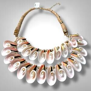 Free People Concha Shell Statement Two Strangers Necklace NWT Layered Beach Boho