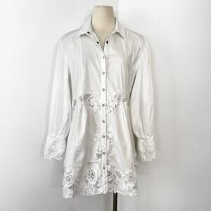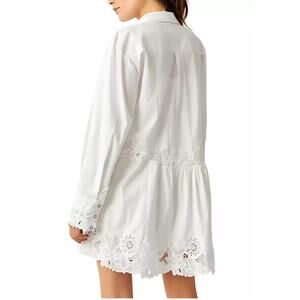 Free People Constance Mini Dress Embroidery Button-Up Long Sleeve Cotton White M