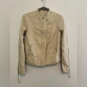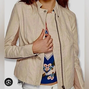 Free People Cool & Clean Vegan Leather Moto Jacket Cream Size 6 Wool Blend