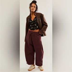 Free People Cool Harbor Wide Leg Trousers Barrel Pant deep mahogany size XS