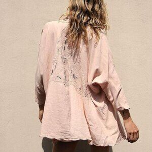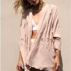 Get comfy in this so pretty cardi featured in an open front design with delicate crochet lace details and a ruffled hem. Shawl collar, Relaxed fit, Lightweight, pullover, 52% Cotton/48% Viscose.